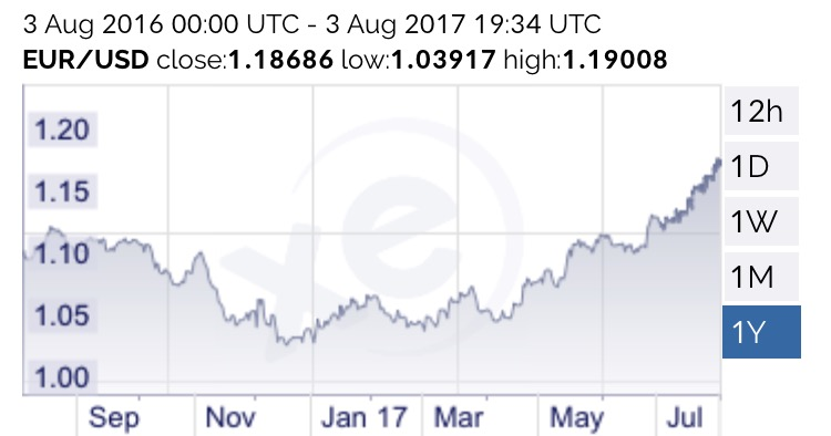 Een sterke Euro tegenover een zwakke Dollar keert dat om, en ik ben daar niet voor. Ik koop m’n horloges liever een paar Euro duurder in Europa, terwijl ik ze van een vaste baan betaal, en met een nationaal handelsoverschot en een krappe arbeidsmarkt.