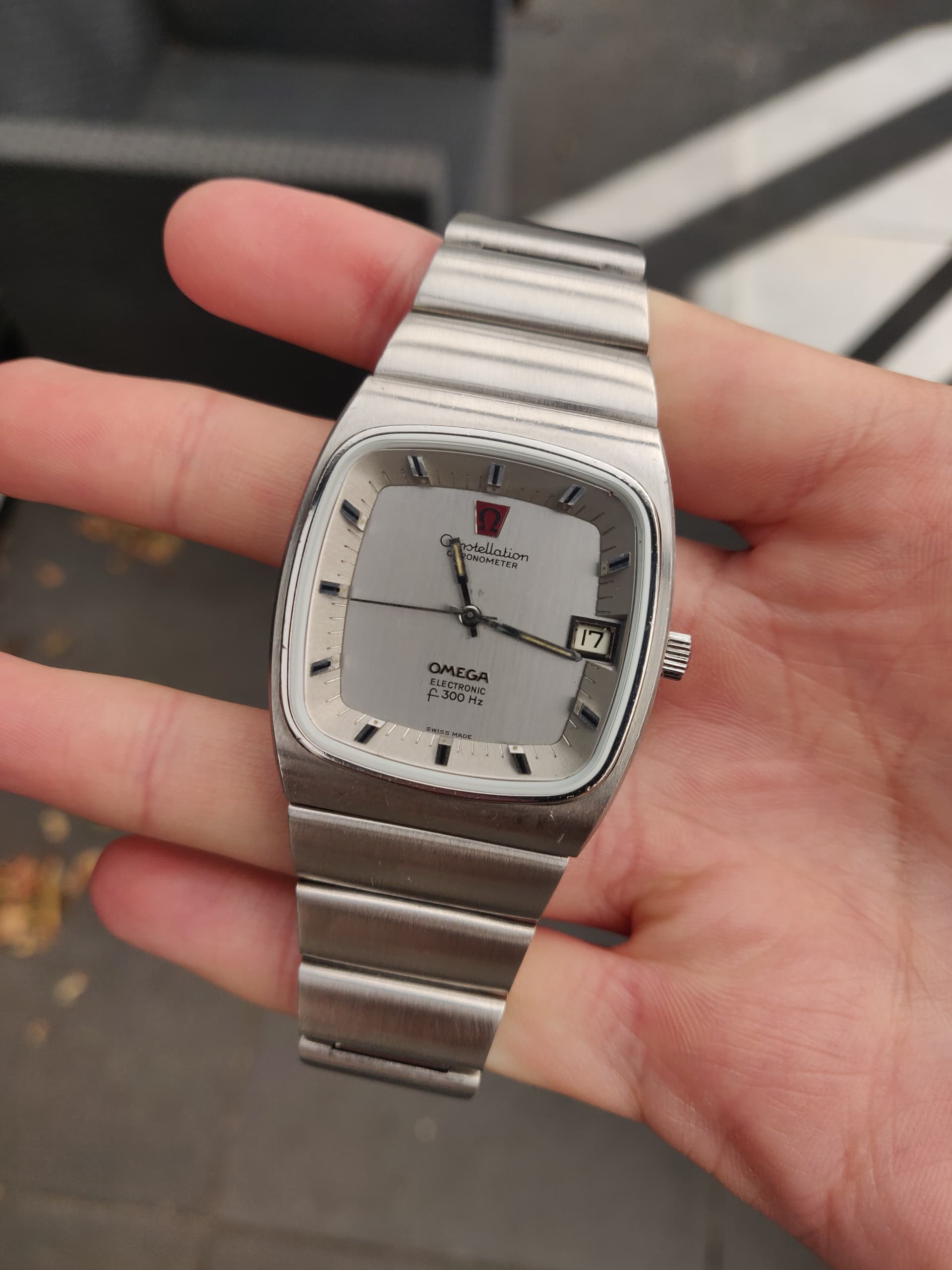 Een prachtig zoemende Constellation. Helaas vind ik de band te dik voor mijn pols, dus krijgt het horloge bijna geen draagtijd meer ![]()
