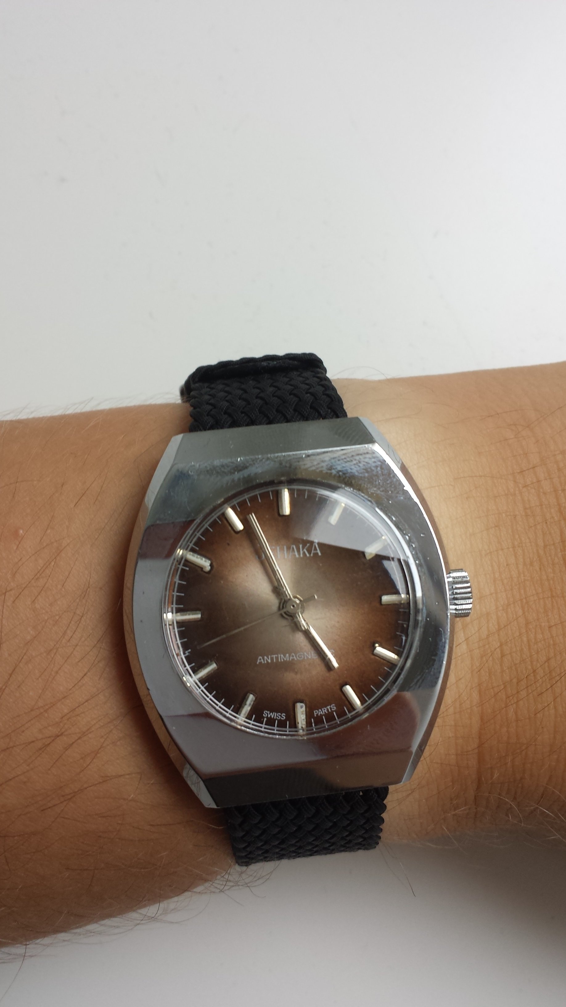 Mijn jaren '70 Timex heeft ook zo een penanker uurwerkje dat niet te servicen is omdat het dicht geklonken is. Het dingetje dat ik voor 2 ⬠op een vlooienmarkt gekocht heb loopt uitstekend op tijd.