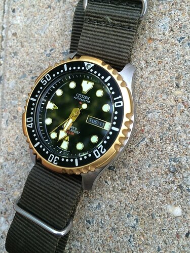 Ik ga denk ik toch opzoek naar een mooie rubberen band. Ik vind die nato’s eigenlijk niet lekker zitten. Wel jammer want ze zien er altijd wel eluk uit.