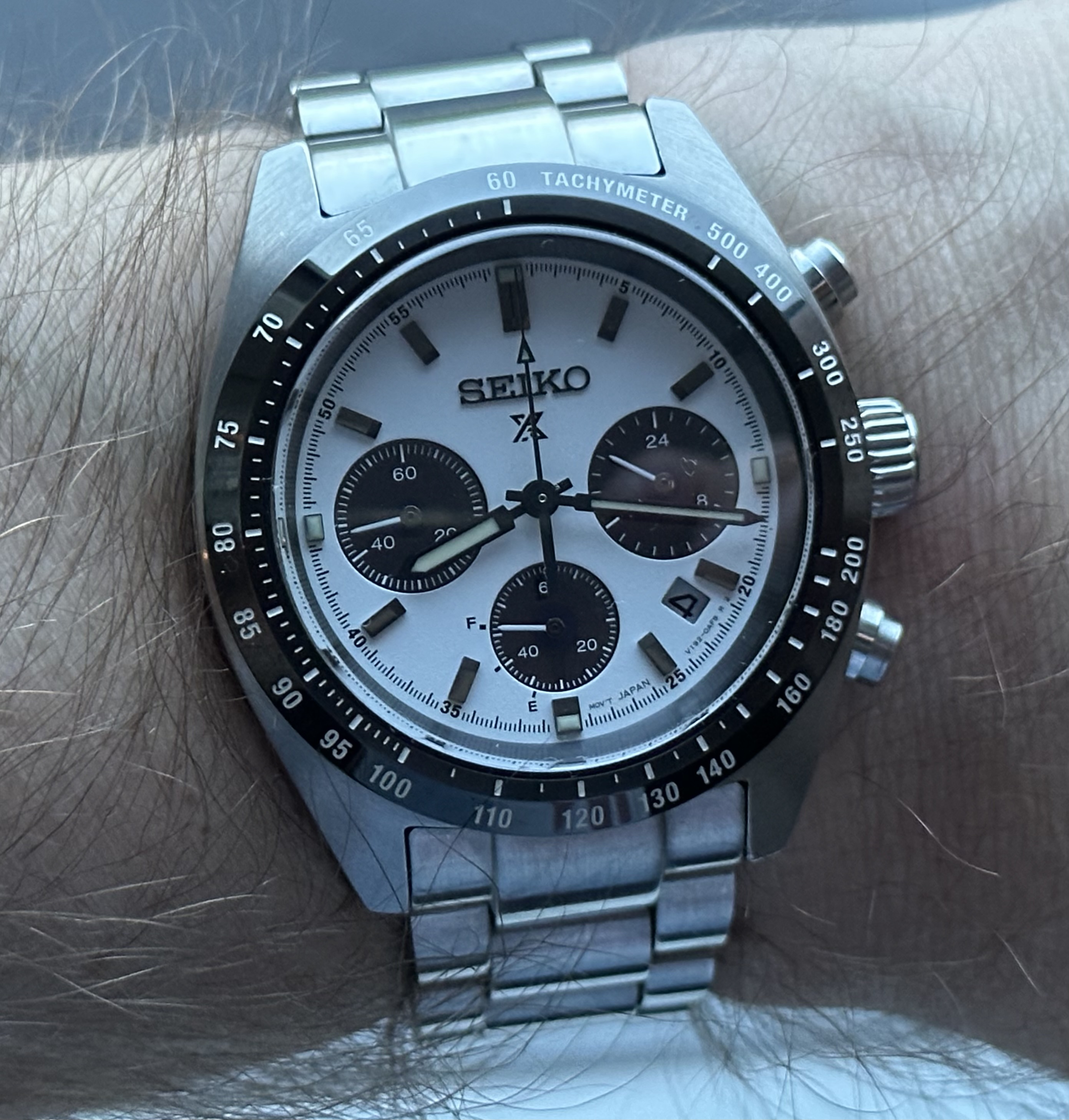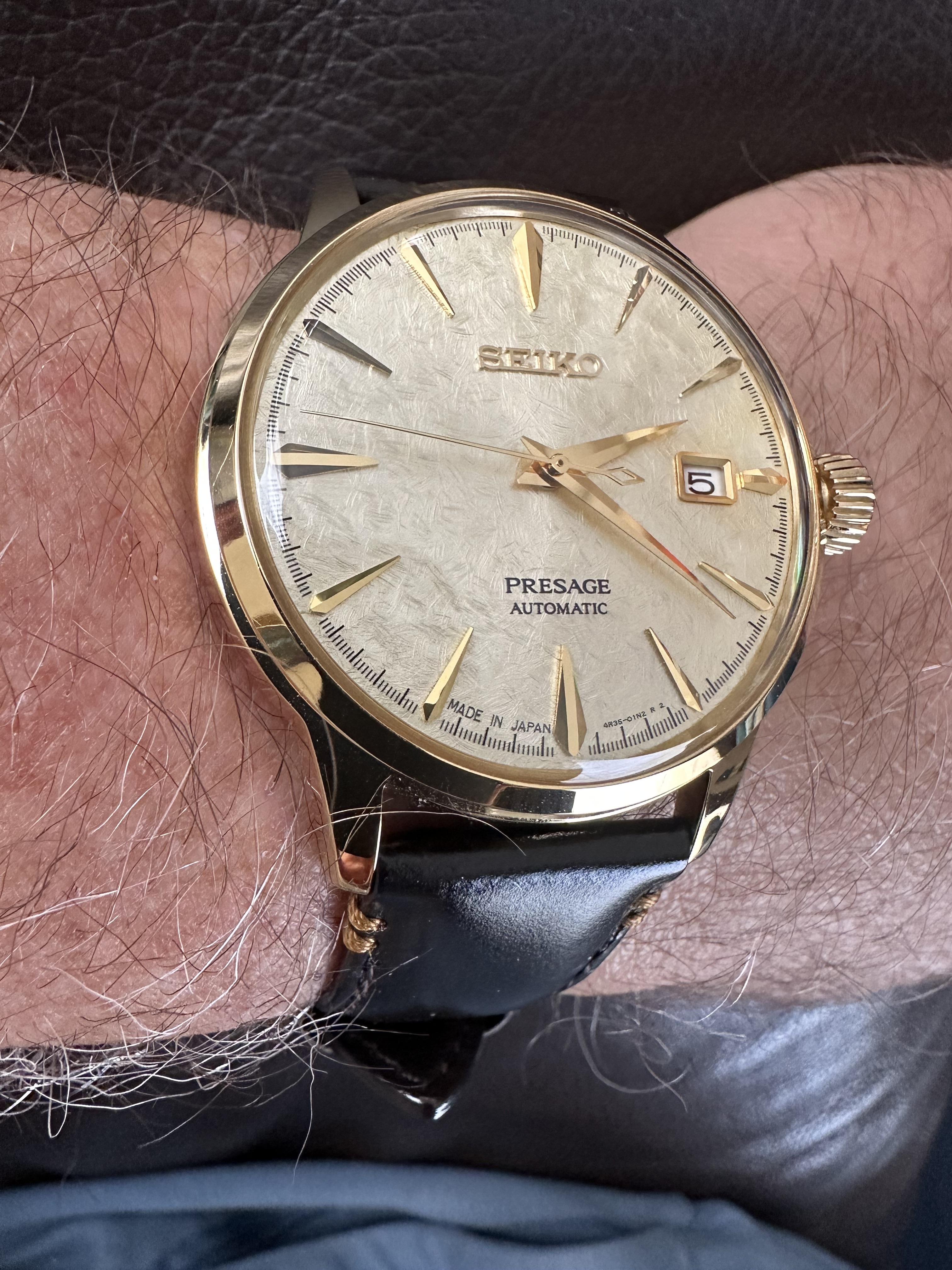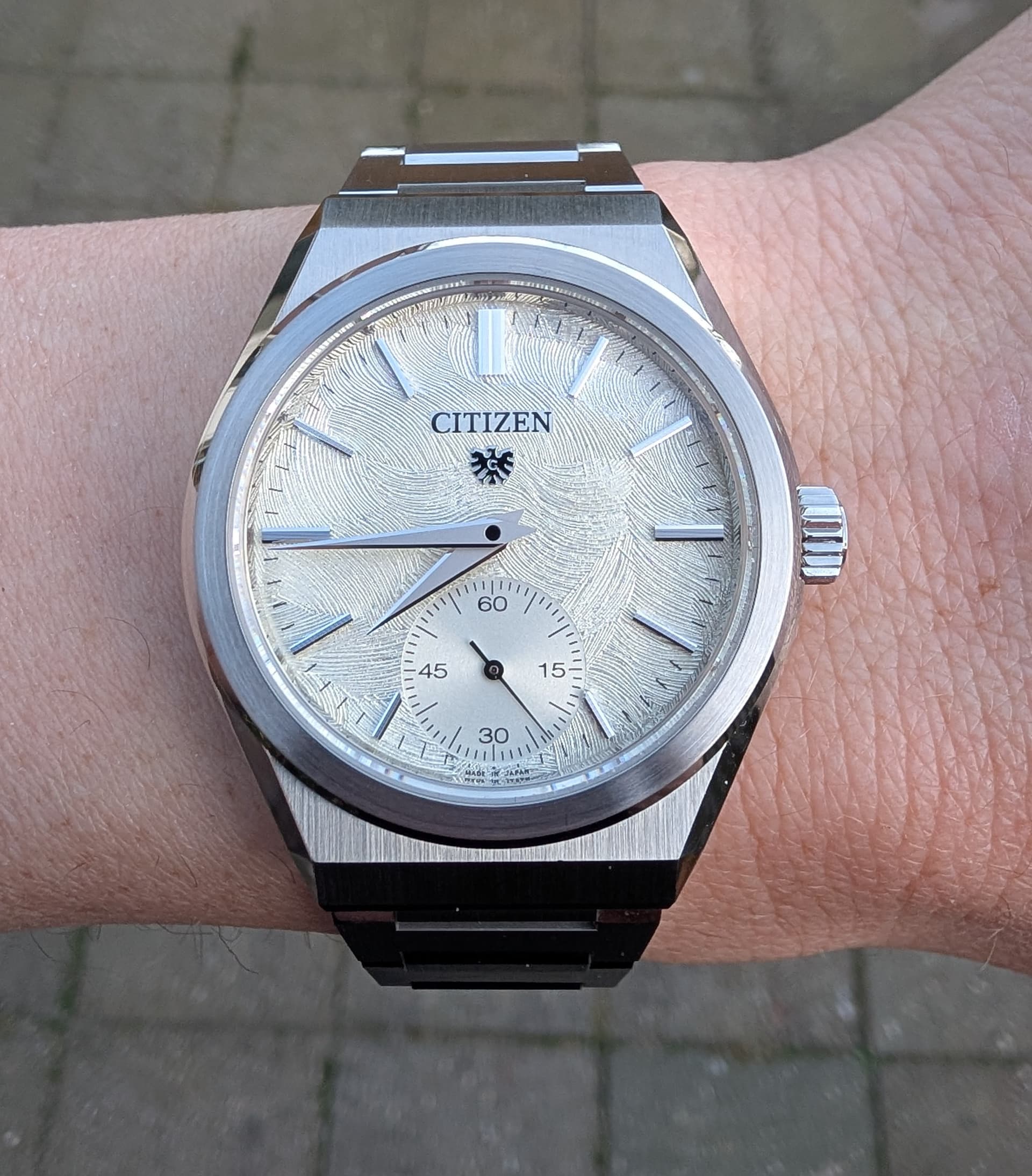 Belachelijk mooi ding eigenlijk. Een GS is nog ff niet in beeld hier maar dit tikt wel een hoop boxes hier… 44GS case, 5 link band, mooie tint wijzerplaat en fantastische structuur… ![]()