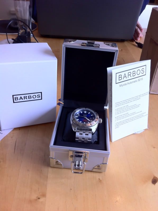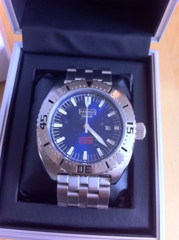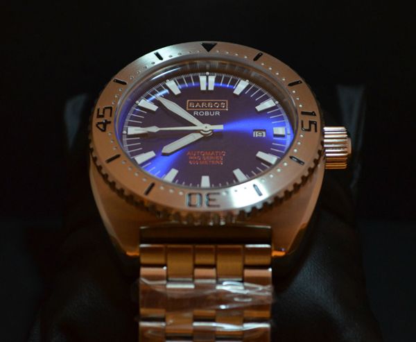 Ben heel benieuwd naar de kwaliteit, het is best een loei van een klok, Miyota automaat, 46 mm doorsnee, bijna 250 gram met stalen band, en 500 meter waterdicht…