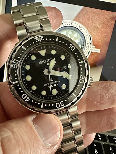 Door mijn squashbuddy tijdens zijn diensttijd in de jaren '80 gekocht in de personeelswinkel in Seedorf, daarom ‘Son’, want Duits voor Sonntag. Hij ‘hoefde’ hem een paar jaar geleden niet meer. Bij mij was hij welkom! Duurde een tijd voor ik hem kon dragen, want degene bij wie ik op de Rikketik een nieuw bandje kocht en die dat er wel even op zou zetten brak de pin af. Het uiteinde bleef in het gaatje zitten. Uiteindelijk door een goede horlogemaker er uit gehaald. Meteen een onderhoudsbeurt laten geven, hoewel de waarde van het horloge dat eigenlijk niet rechtvaardigde. Prettige en zonnige zondag!
