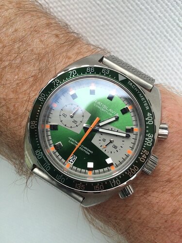 Oeh, ziet er lekker uit! Maar ja, ik ben ook een sucker for dit soort retro gebeuren! Hoewel ik zelf een dergelijke klok lekker op een rallyband zou dragen. Dat hoort er imo echt bij. Ga morgen, als ik effe tijd heb, ook 'ns kijken voor een rally strap voor m’n PRS516. Gaat volgens mij een heel fijne combi worden. Gefeliciteerd en ben benieuwd naar je gebruikerservaring over een tijdje. Houd ons op de hoogte! En voor nu geniet ervan!
