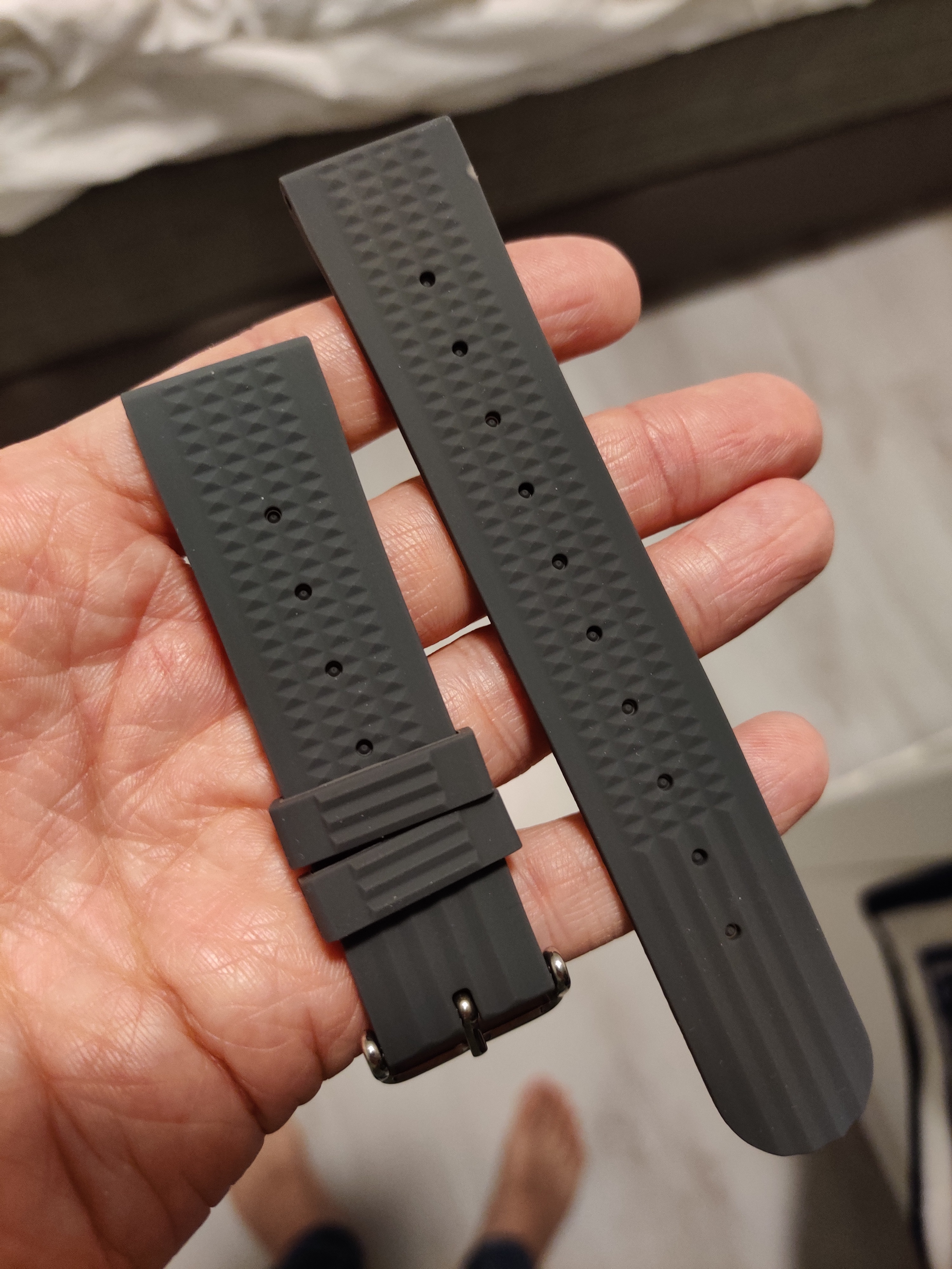 Ik heb trouwens twee waffle straps: de curved custom-fit voor de SKX en een rechte (universele). Enige punt van kritiek: de gaatjes zitten best ver uit elkaar, dus als hij niet goed past heb je best pech.
