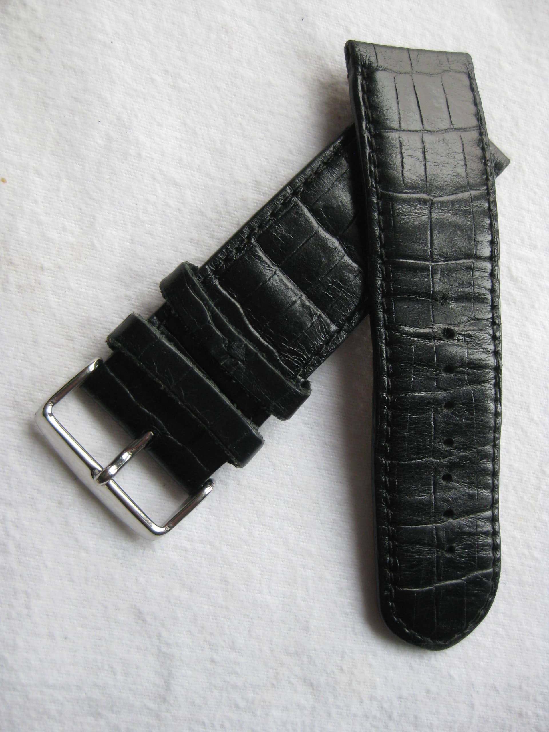 Een zeer soepele gedragen lederen croco zwarte band in de maat 28 x 28 mm lengte 12 x 9 cm, was bij aankoop erg prijzig maar maar weg voor 10 €