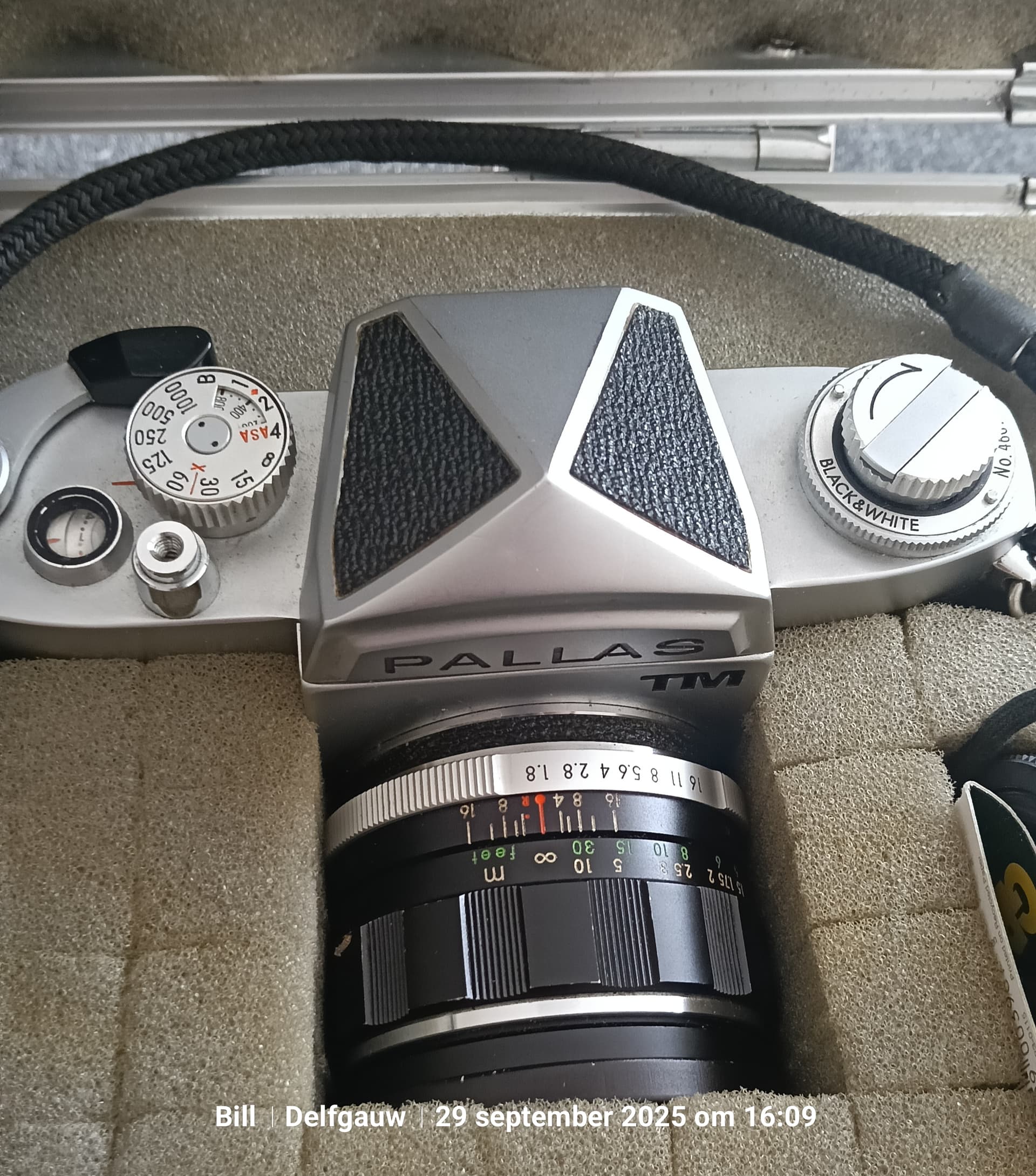 Pallas, een latere batch naam voor Miranda. Afneembare zoeker. Hartstikke leuke camera. Met een Miranda F maakte ik mn allereerste foto’s. Nostalgie dus. Mooi detail die rechterkant met ‘black&white’