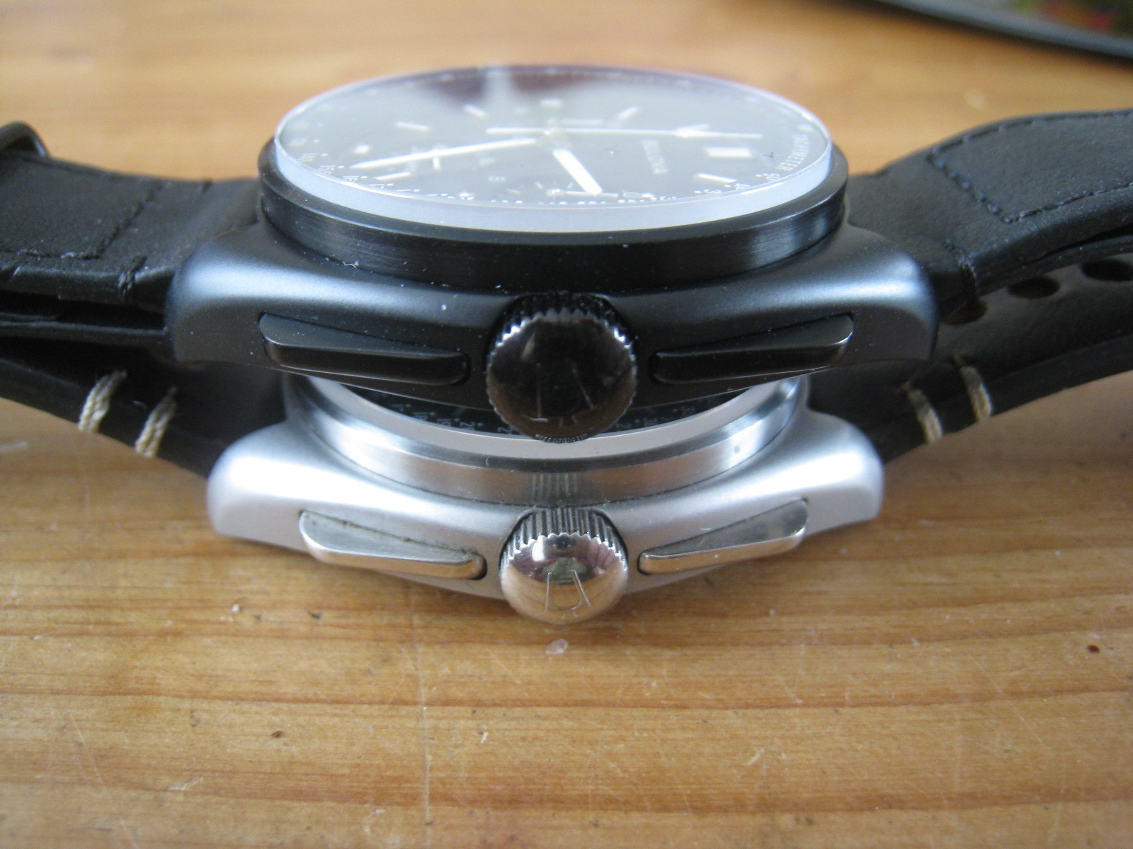 ), en betere coating op het glas. Waar de normale een donkergrijze wijzerplaat lijkt te hebben, schijnt deze meer blauwzwart door de AR coating. Met flits niet te zien, maar zonder duidelijk wel: